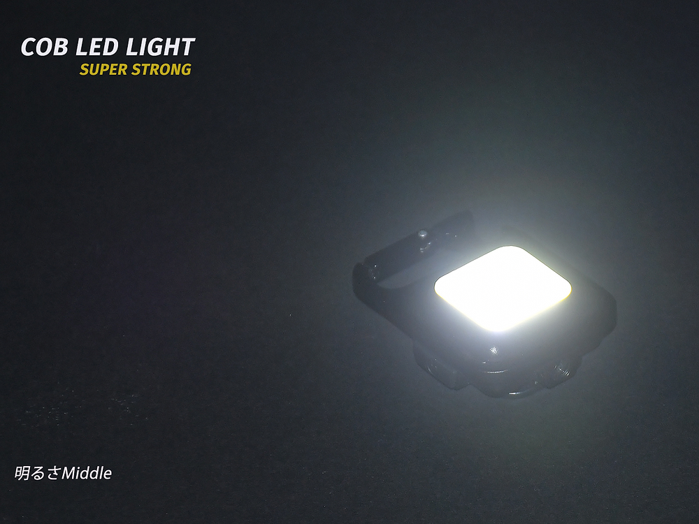 型番:FLP-001 サイズ:約W50×L60×T20(mm) 重量:約45g 入力電源:AC5V / 2A 電池:500mAh リチウムイオン電池 ライト:COB LED ルーメン:500ルーメン 点灯モード:4パターン:COB超強(100%)、COB強(60%)、COB弱(30%)、点滅フラッシュ 連続使用時間:超強:約1時間、強1,5時間、弱:約3時間、点滅フラッシュ:約1時間 充電時間:約1.5時間 防水規格:IPX4相当 / 防滴仕様 JANコード:4562243349255